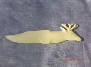 Roi de la forêt, le cerf majestueux, impérial dans ses attitudes, domine le monde animal de nos contrées. Imposant par sa stature, il est le plus représentatif de nos animaux sauvages. Je l’ai souvent décliné en coupe-papier, pot, broche ou en pendentif sur os ou corne.